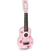 Colorata chitarra dotata di 6 corde di nylon che possono essere accordate e un plettro che permette di suonarle: esattamente come una vera chitarra per avvicinare i bambini al mondo della musica e del suono. Realizzata in robusto legno garantito da fonti responsabili e della giusta misura per essere maneggiata anche dai più piccoli. Promuove il gioco sensoriale e la creatività, consigliata dai 3 anni