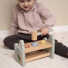 Una variante divertente e colorata del classico gioco palla e martello: qui vanno colpite le “uova” della gallina e fatte sprofondare nella base sottostante con un piccolo martello di legno. La stimolazione visiva è alta, cosi come la motricità e la coordinazione mano/occhio. Stimola la capacità di comprensione di causa ed effetto e aiuta nel riconoscimento dei colori. Realizzato in legno FSC, colorato con vernici atossiche. Consigliato dai 12 mesi