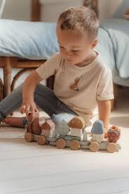 Colori delicati e tante combinazioni per lo scoiattolo che guida questo mini trenino: nei suoi vagoni troviamo ghiande, piante, funghi e altre figure del bosco da poter scomporre e ricostruire a piacere. I tre elementi collegati , con movenze morbide, sono trainabili. I bimbi passeranno ore a passeggiare trainando questo adorabile treno e a montare e smontare la composizione dei vagoni, stimolando la coordinazione mano/occhio e le capacità motorie. Colori atossici e legname garantito FSC. Consigliato dai 12 mesi.