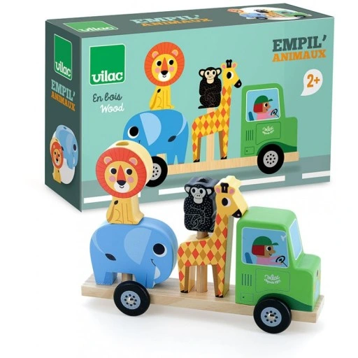 Camion in legno con pianale dove caricare i simpatici animali della savana. In un solo gioco ne ritroviamo ben 3: c’è il gioco classico del camion che viaggia e trasporta gli animali, ci sono i 4 colorati animali che possono partecipare all’avventura e c’è quello più stimolante a livello di coordinazione che invita il bambino a rimettere al loro posto gli animali, infilandoli nei pali guida affinché non si muovano. Tutto colorato e sagomato con profili morbidi e di facile presa. Realizzato con legno da fonti responsabili e colori atossici, consigliato dai 2 anni
